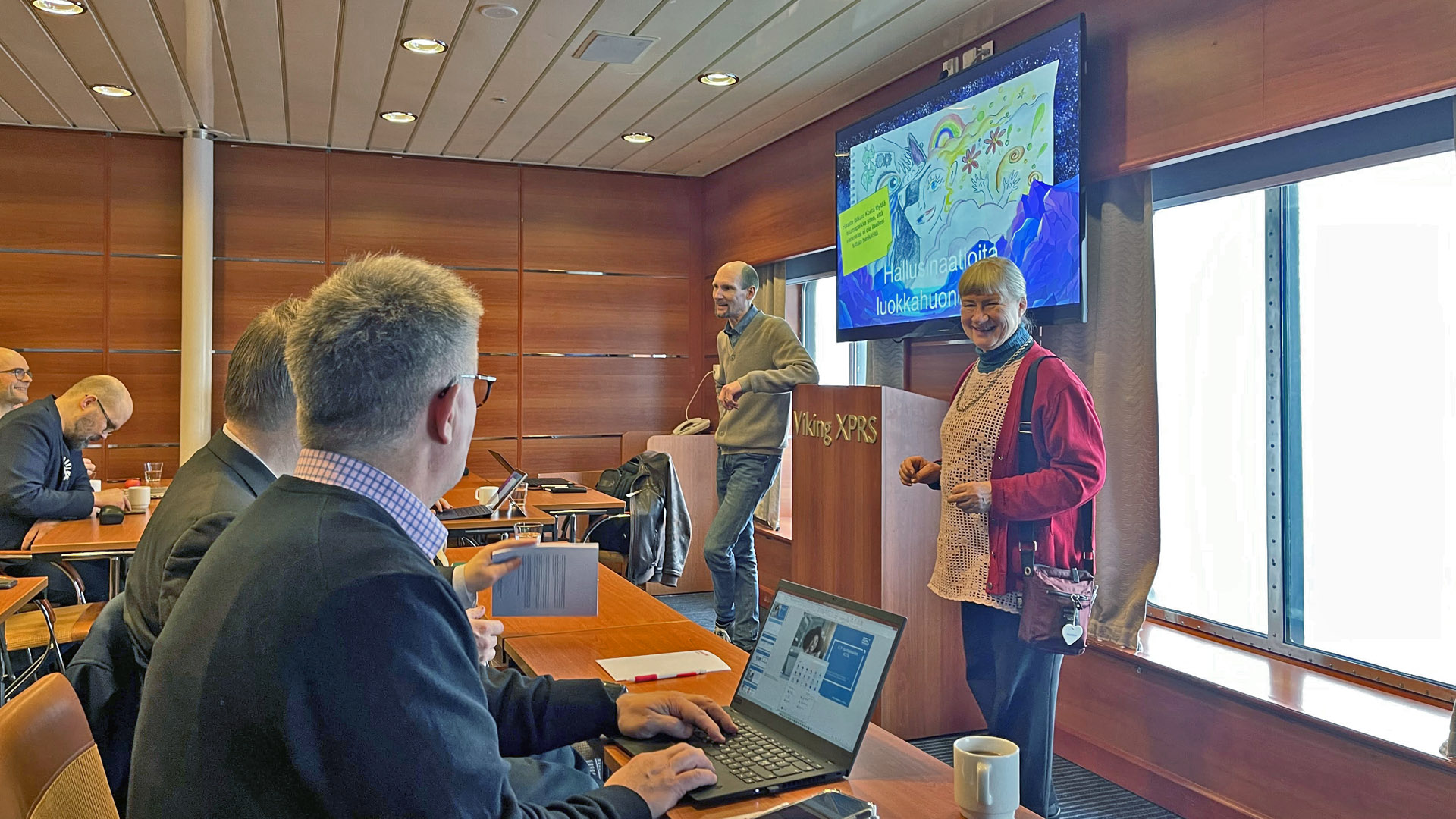 Seminaarin kahden päivän aikana lavalle nousi yhdeksän puhujaa. Tässä seminaarin avaus: lavalla yhdistyksen puheenjohtaja Tarmo Toikkanen sekä matkanjohtaja Eija Kalliala. Kuva: Anne Rongas
