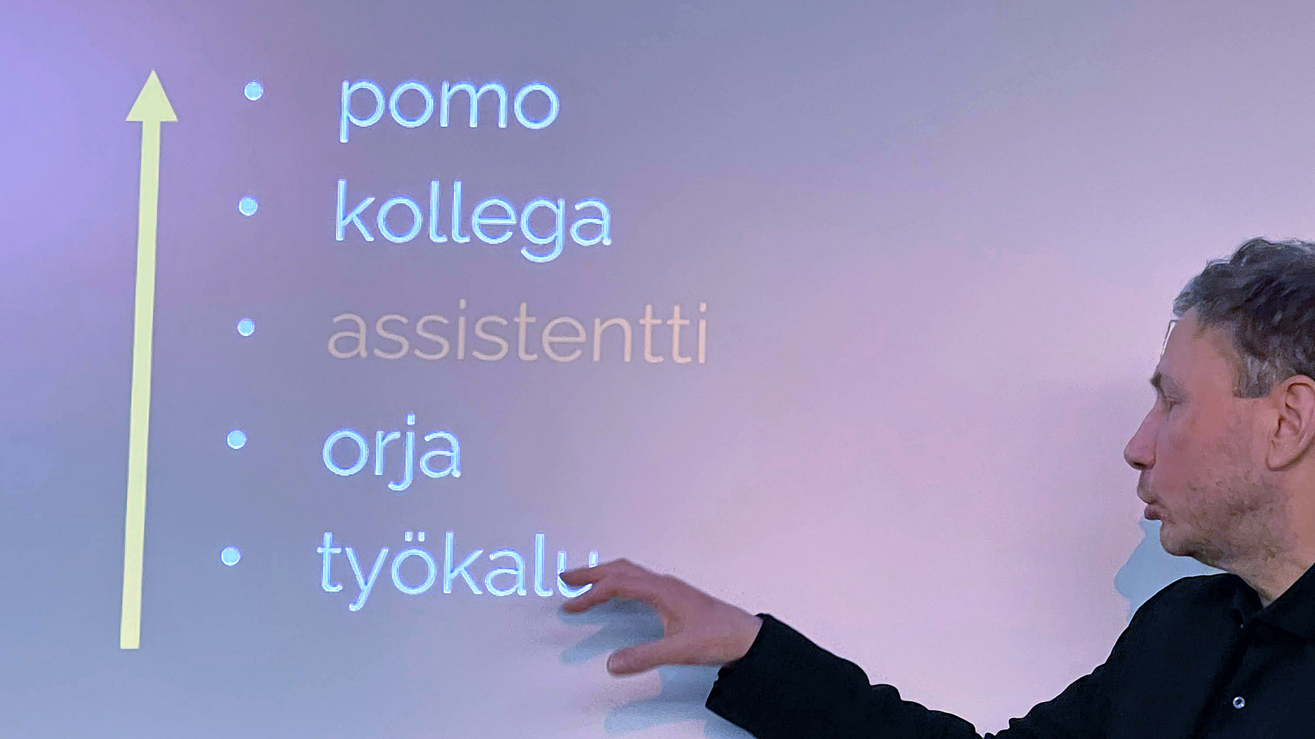 Reidar Wasenius pohtii tekoälyn roolia työelämässä. Kuva: Anne Rongas.
