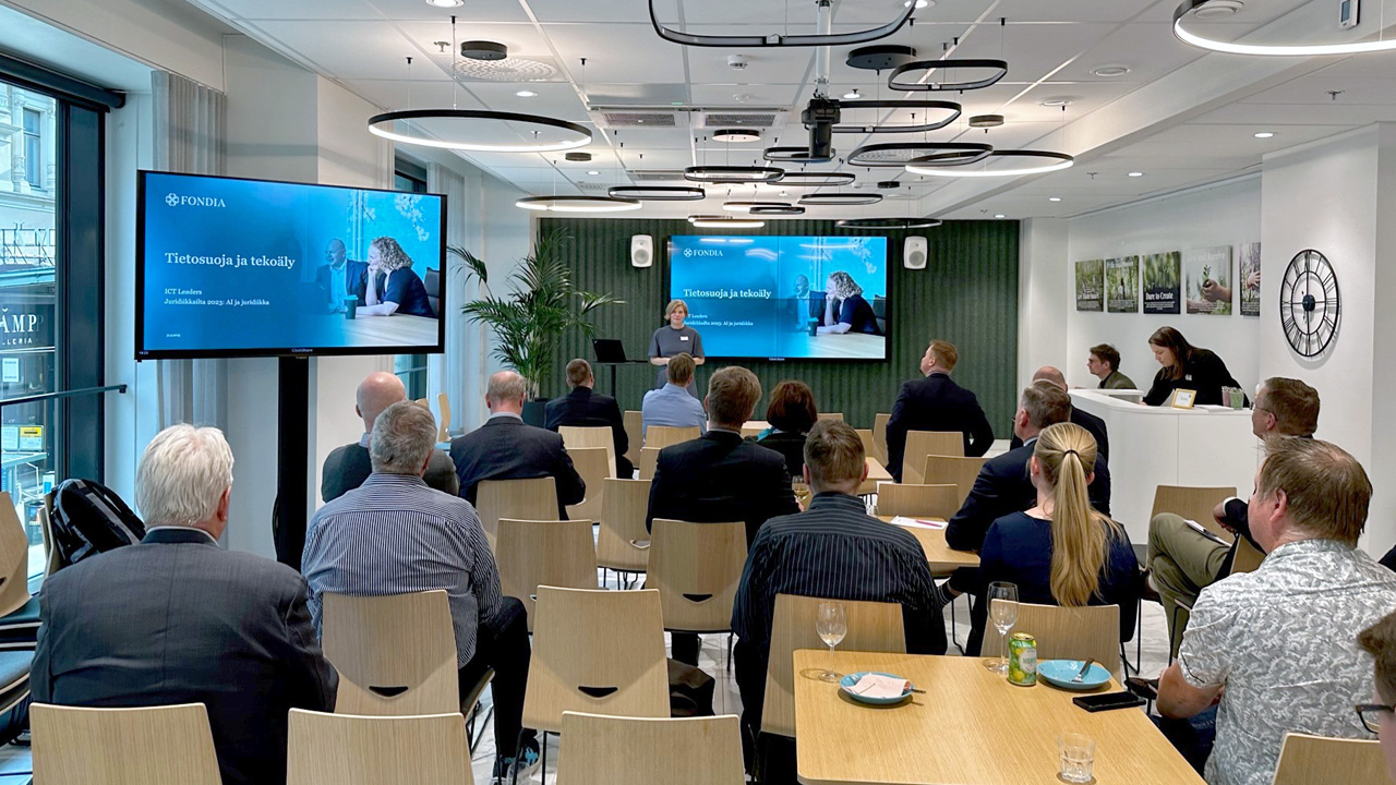 Tekoäly tulee ja LinkedIn-julkaisujen perusteella asiantuntijoiden määrä on kasvanut räjähdysmäisesti. Mihin tekoälystä on, mitä on hyvä huomioida lakimielessä ja viekö tekoäly meidän työmme? Muun muassa nämä aiheet keskusteluttivat osallistujia ICT Leaders Finland ry:n sekä lakitoimisto Fondian järjestämässä juridiikkaillassa 31.5.2023.