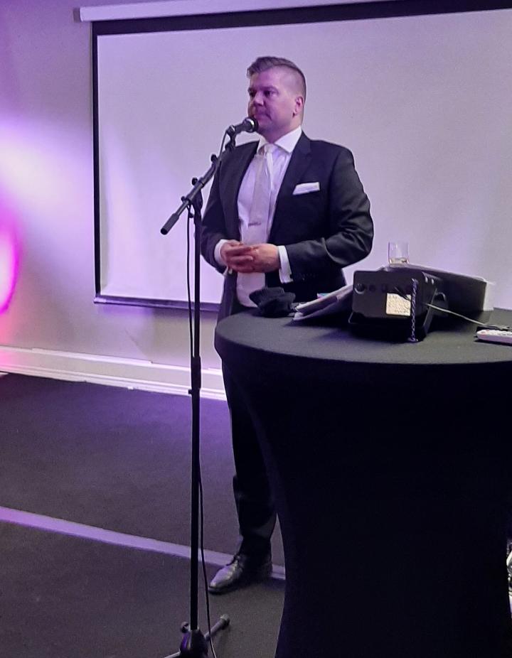 Mitro Kivinen piti onnittelupuheen viisikymppiselle.